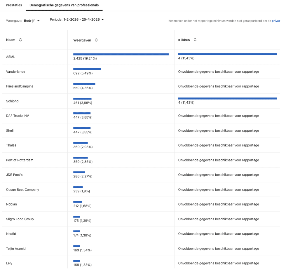 De LinkedIn Ads, Google Ads en YouTube Ads uit Stap 1 hebben pas waarde als ze ook leiden tot het juiste websiteverkeer. Met onze leadsoftware controleren we welke target accounts daadwerkelijk de website bezoeken na de advertentie-exposure. Zo zien we zwart op wit dat de campagnes de juiste bedrijven raken, en niet zomaar bezoekers opleveren.