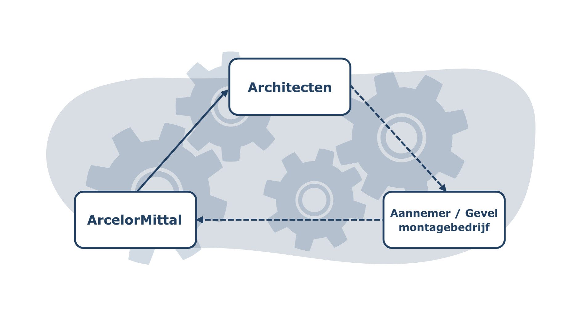 Dit creëert een interessante strategische driehoek: de marketing richt zich op architecten in de bouw, terwijl de uiteindelijke opdrachten doorgaans binnenkomen via montagebedrijven en aannemers.