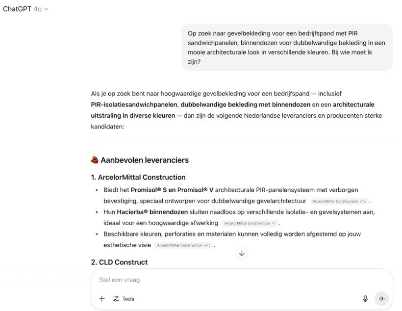 Om architecten effectief te bereiken combineren we verschillende online marketingactiviteiten in één gerichte aanpak. Met SEO en GEO-targeting zorgen we voor optimale vindbaarheid en relevant verkeer. Via Google Ads en LinkedIn Ads bereiken we direct de juiste doelgroep en vergroten we de zichtbaarheid vanaf dag één. Daarnaast creëren we inspirerende content voor platforms als Archello en Architectenweb, waardoor ArcelorMittal onder de aandacht blijft bij architecten. Deze mix van strategie en uitvoering legt de basis voor herkenning, vertrouwen en structurele groei.
