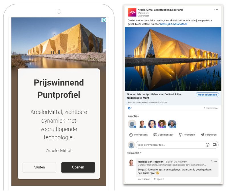 Sinds 2020 werkt Barney Media samen met ArcelorMittal Construction Benelux in Tiel om de naamsbekendheid te vergroten en de betrokkenheid bij architecten te versterken. Het doel: de vooraanstaande marktpositie behouden én verder uitbouwen.