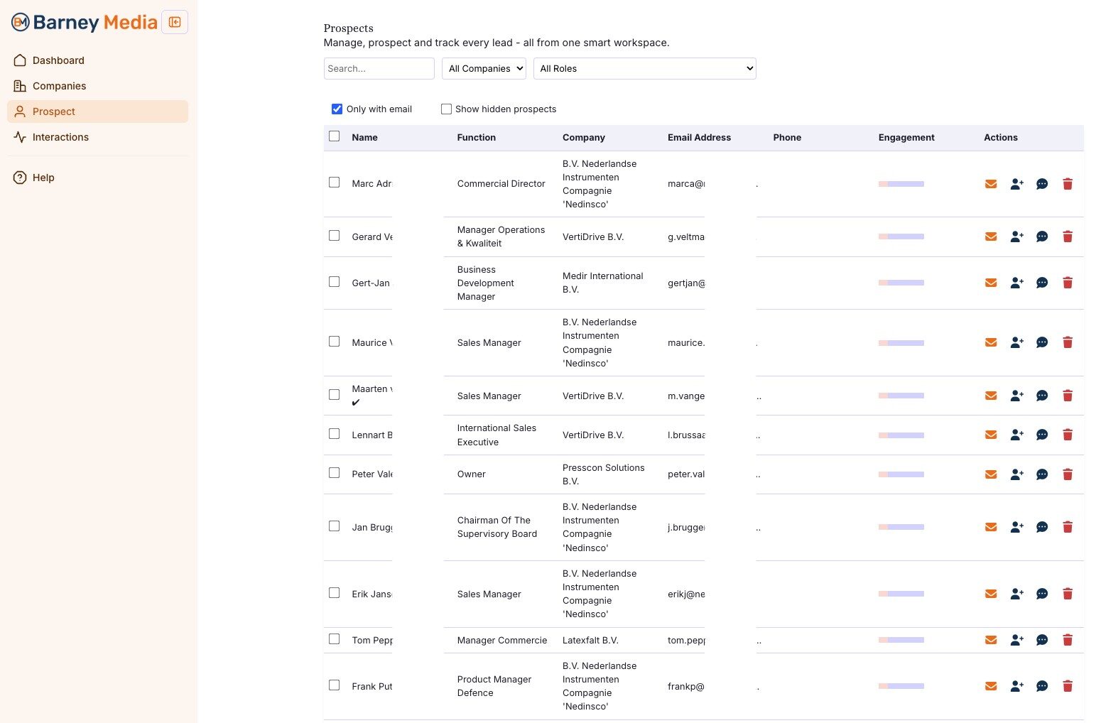 5. Uitsturen in één klik – campagnes en opvolging via LinkedIn, e-mail, telefoon of zelfs per fysieke post.